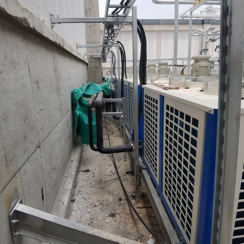 (8) 制熱運行因地制宜:可以使用集中供熱的熱水,也可安裝小型掛墻式燃氣熱水器作為能源,實用熱水盤管冬季采暖??梢允褂脽岜檬娇照{(diào)機采暖。在熱量不足時,用燃氣熱水器及熱水盤管加熱。