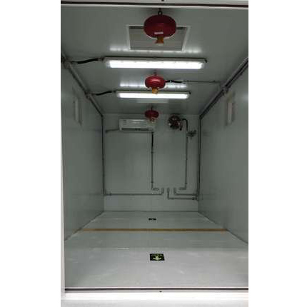 柜內(nèi)設(shè)防爆空調(diào)和監(jiān)控系統(tǒng);柜內(nèi)頂部安裝防爆照明燈、自動(dòng)滅火系統(tǒng)、煙霧報(bào)警系統(tǒng);所有電路安裝滿足防爆要求,使用防爆穿線管穿線,線路接頭使用防爆接線盒,防爆開關(guān)等;柜體內(nèi)部可設(shè)置開放式貨架、pp酸堿柜、防火安全柜、防爆冰箱等,可根據(jù)客戶具體的使用需求,配置對(duì)應(yīng)的儲(chǔ)存產(chǎn)品;所有儲(chǔ)存產(chǎn)品都設(shè)有管道連接廢氣處理裝置;智能控制系統(tǒng)可根據(jù)廢氣的濃度自動(dòng)啟動(dòng)廢氣處理裝置,通過(guò)風(fēng)管將揮發(fā)性廢氣通入主排風(fēng)管道,經(jīng)具有專利技術(shù)的光催化氧化處理單元和復(fù)合式活性吸附單元等多級(jí)處理單元處理后合格排放;所有電器均做智能連接,智能控制系統(tǒng)可監(jiān)控柜內(nèi)各類監(jiān)測(cè)數(shù)值,保證柜體安全儲(chǔ)存,緊急狀態(tài)下系統(tǒng)會(huì)發(fā)送手機(jī)短信或語(yǔ)音電話等方式通知客戶并啟動(dòng)聲光報(bào)警功能,智能控制系統(tǒng)具有pc端、手機(jī)app遠(yuǎn)程控制功能;柜體內(nèi)設(shè)有漏液回收功能,漏液可通過(guò)管道流到回收桶內(nèi),進(jìn)行漏液收集、處理。