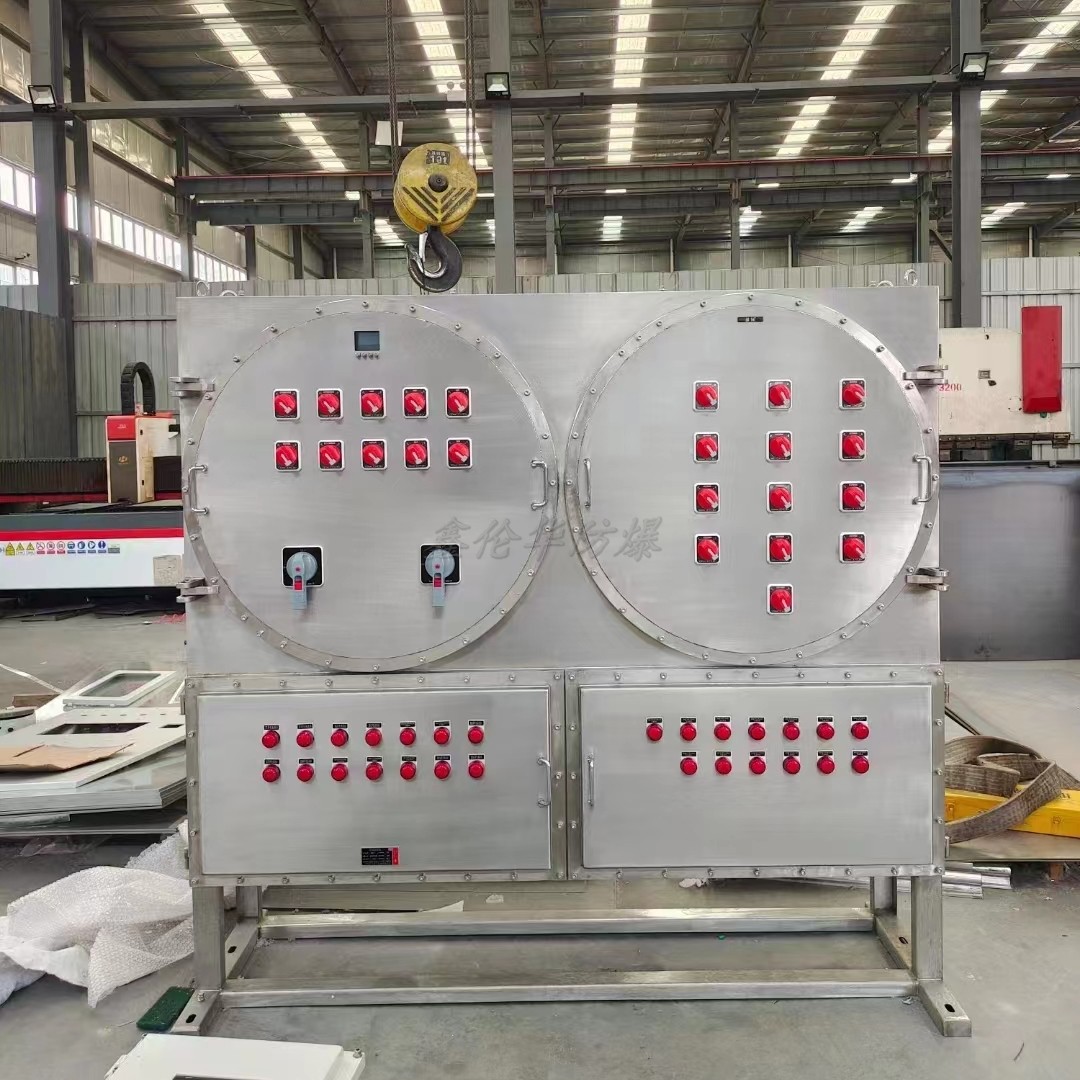防爆照明配電箱一般按照電氣接線要求將開(kāi)關(guān)設(shè)備、測(cè)量?jī)x表、保護(hù)電器和輔助設(shè)備組裝在封閉或半封閉金屬柜中或屏幅上,構(gòu)成低壓配電裝置。正常運(yùn)行時(shí)可借助手動(dòng)或自動(dòng)開(kāi)關(guān)接通或分?jǐn)嚯娐?。故障或不正常運(yùn)行時(shí)借助保護(hù)電器切斷電路或報(bào)警。借測(cè)量?jī)x表可顯示運(yùn)行中的各種參數(shù),還可對(duì)某些電氣參數(shù)進(jìn)行調(diào)整,對(duì)偏離正常工作狀態(tài)進(jìn)行提示或發(fā)出信號(hào)。
